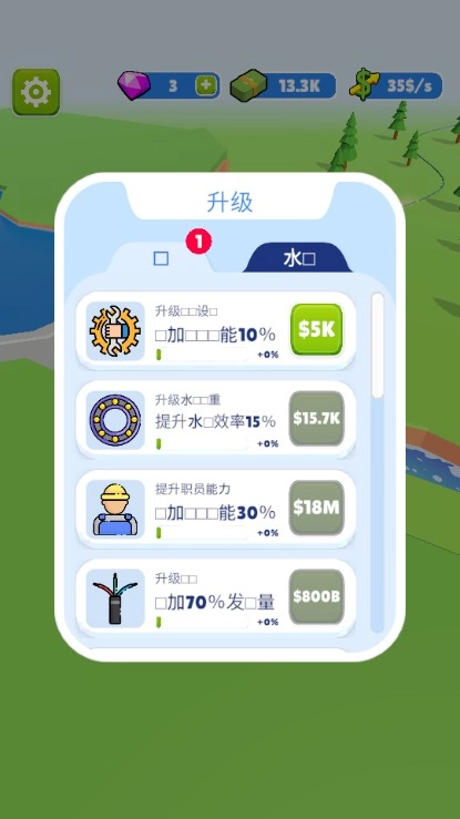 2、玩家能够对水力设备的效率进行升级,以此增加发电产量,进而提升发电厂的收益与效率。