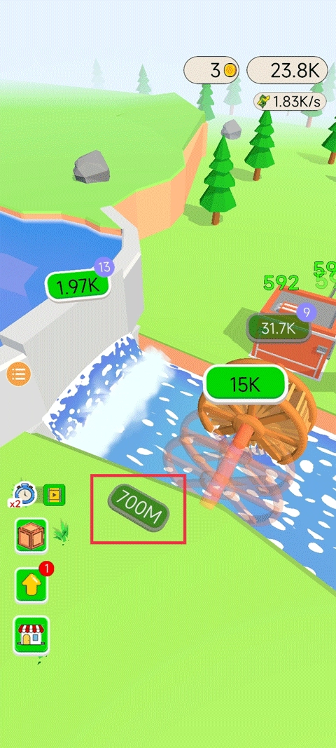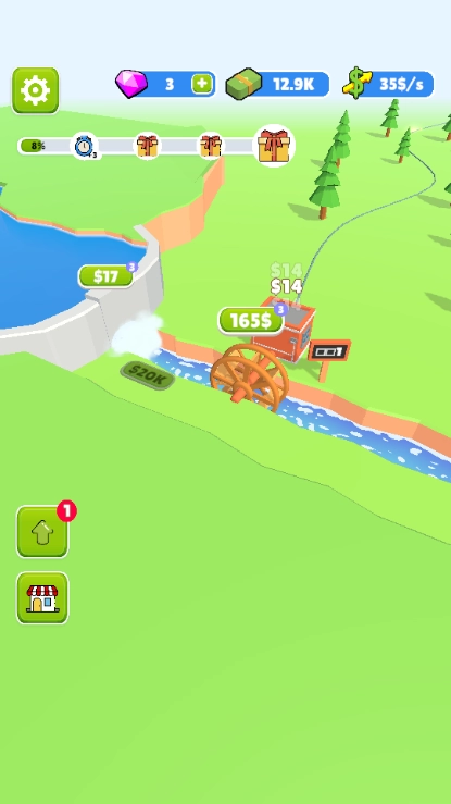 当玩家积攒了足够的货币后,就能扩建并购置新的水力发电机,以此提升收益效率。