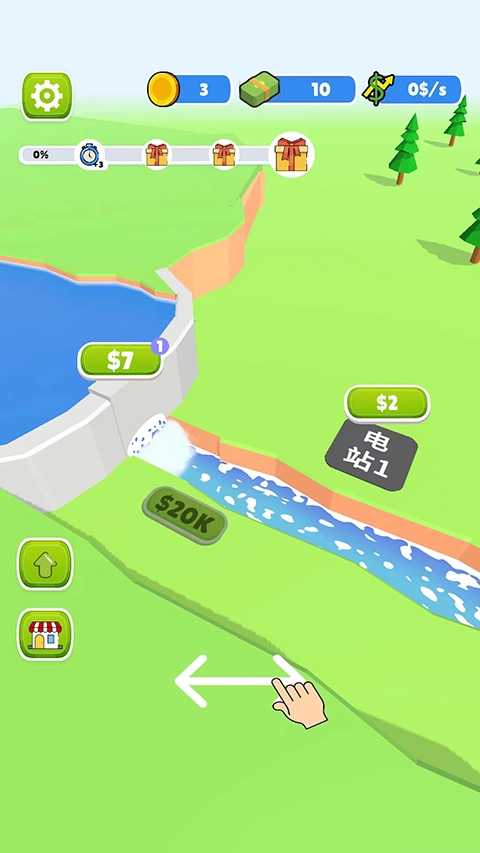 2、借助水力发电,玩家能够获取收益,这些收益可用于解锁新设备、升级站点以及扩建发电厂。