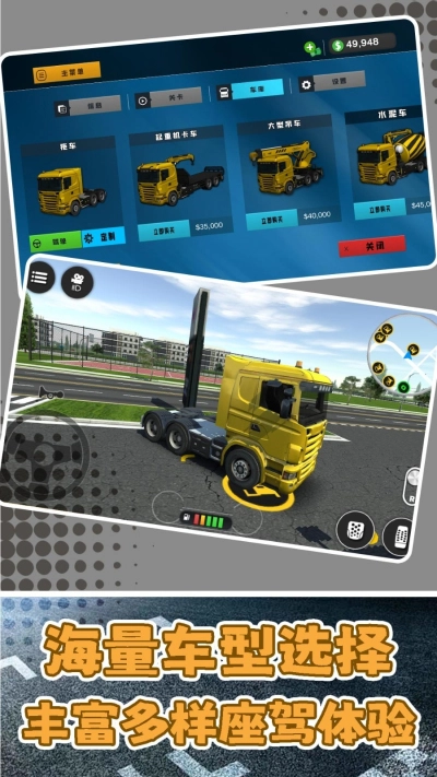 1.进入游戏后,需掌握卡车的基础操作技巧,像换挡、刹车、转向这类技能都要熟悉,这样才能应对多样的路况和不同的天气条件。