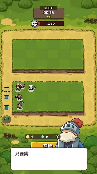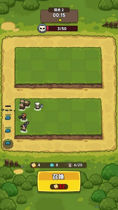 3、完成会进入到塔防游戏中可以点击召唤来派遣小兵
