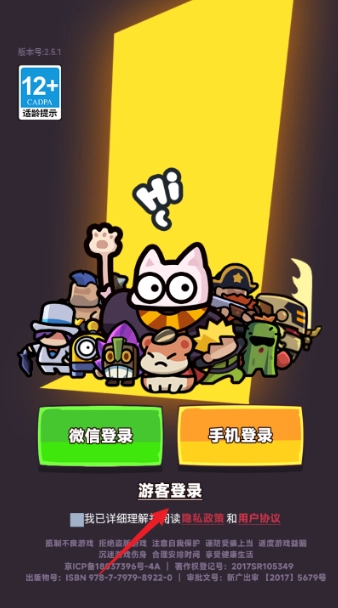 1、启动游戏后,首先需完成账号登录操作,也可选择点击游客登录选项。