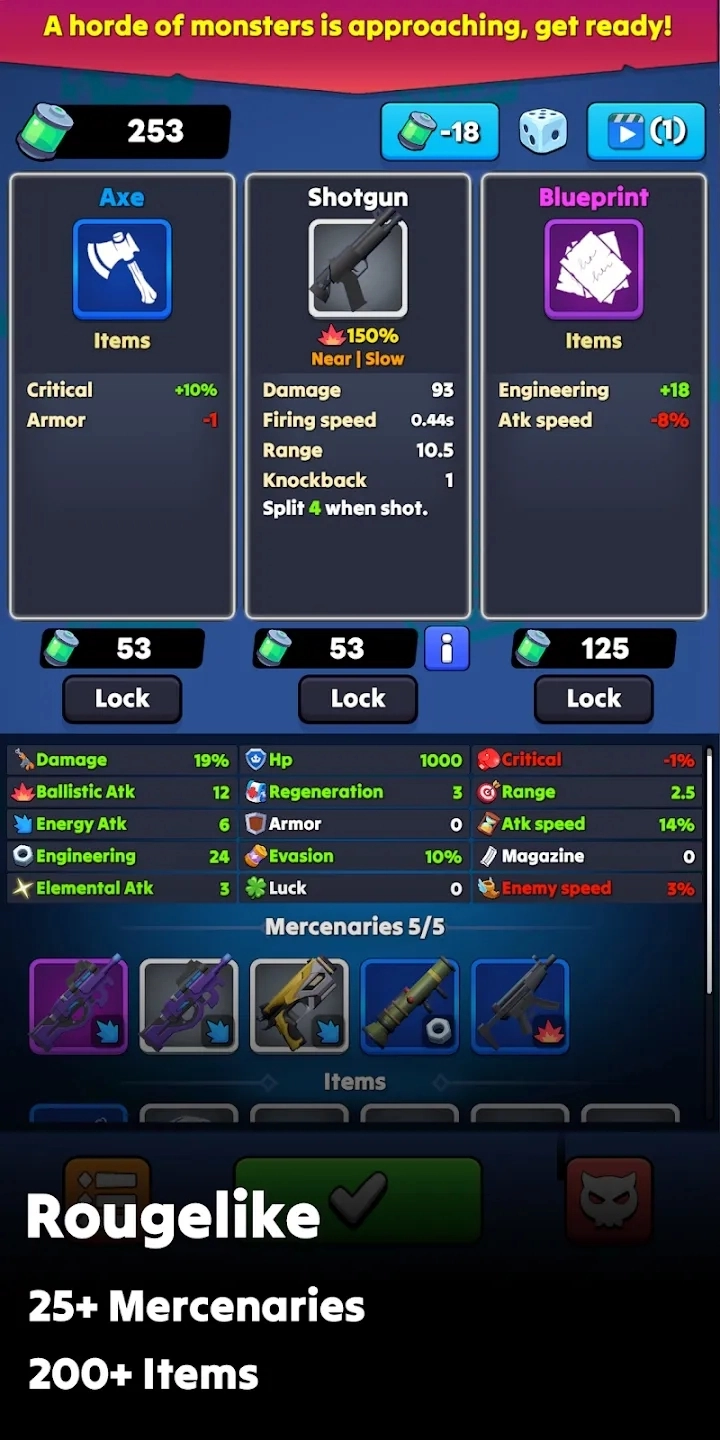 4、各类物品:游戏内提供超200种独特的Roguelike物品,能为战斗提供助力。请合理运用雇佣兵与这些物品。
