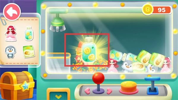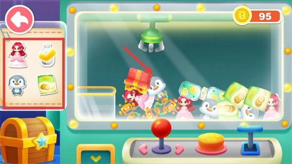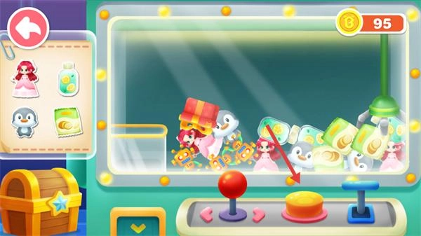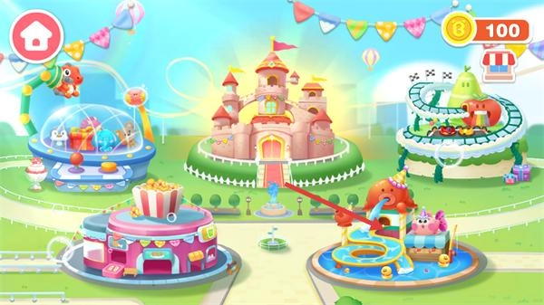 1、选择场景中的游乐设施(如城堡-滑梯等),进入对应互动玩法,积累右上角的【100】金币资源。