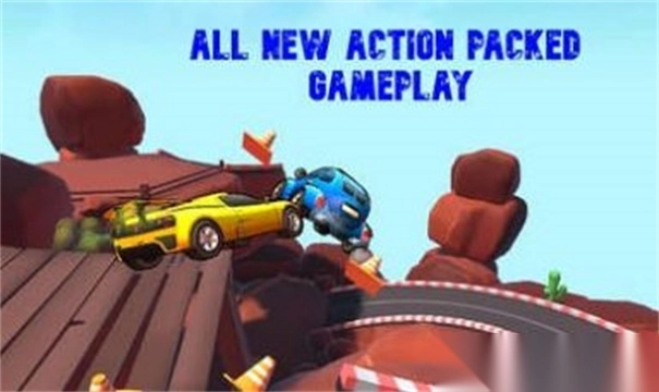 2、复古画面风格:运用经典的复古画面风格,迷你赛车造型简约讨喜,岩石赛道场景色彩鲜亮,结合流畅的动画效果,营造出怀旧的视觉感受。