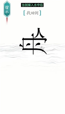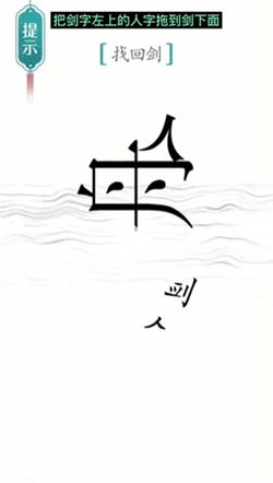 2、接下来我们把【舟】上方的【人】,放置到已经断裂的【剑】下方,具体位置可参考下图。