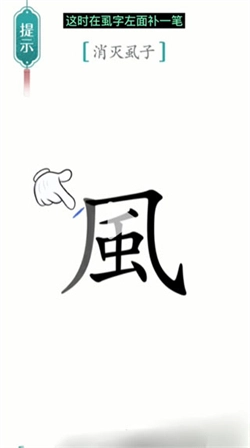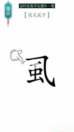 1、先等【虱】字跳两下,接着我们在它的左边添上一笔,就像下面这张图展示的那样。