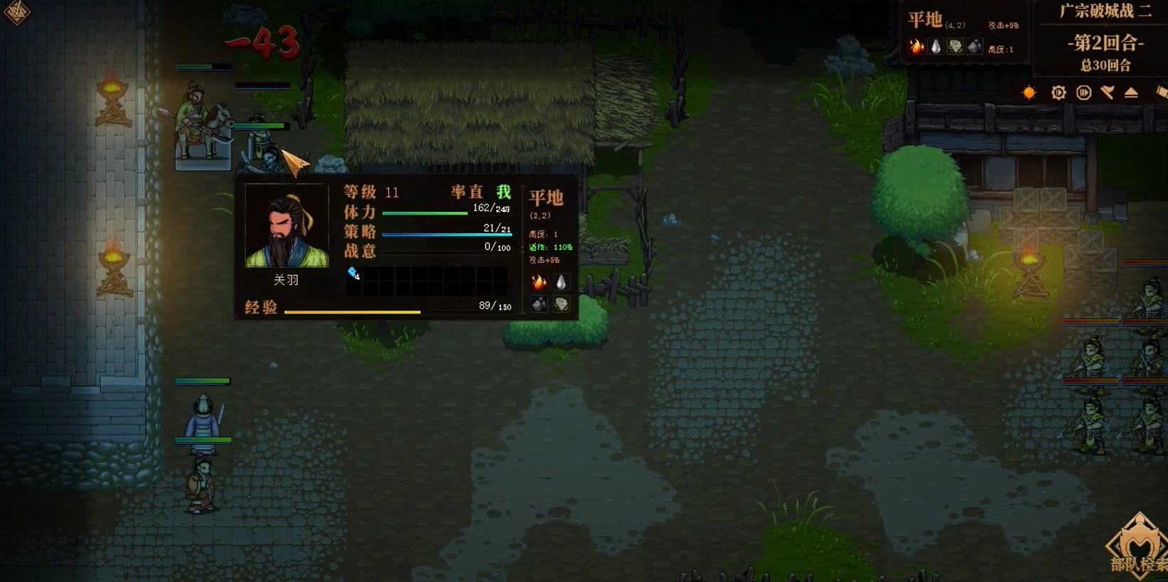 1、历史叙事沉浸体验:以像素风格重现三国战场风貌,涵盖草屋、火把、攻城等经典场景;战役名称、核心角色(如关羽)均与汉末历史深度关联;通过“创业线”的叙事脉络增强玩家代入感,进一步深化情感层面的共鸣。