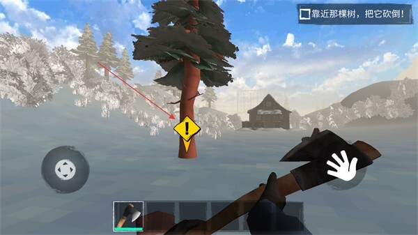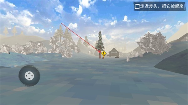 1、进入游戏后,通过左下角的操纵杆来控制角色移动,移动到斧头附近并将其拾取,这样就能获得基础工具了。