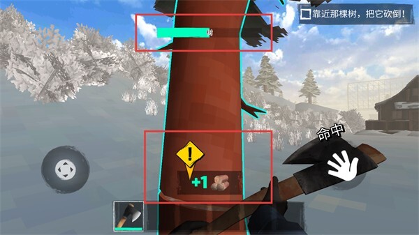 3、砍伐树木的过程中会累积进度条,进度条完成即成功砍倒树木并获得木材,收集足量木材可用于后续的生存活动。