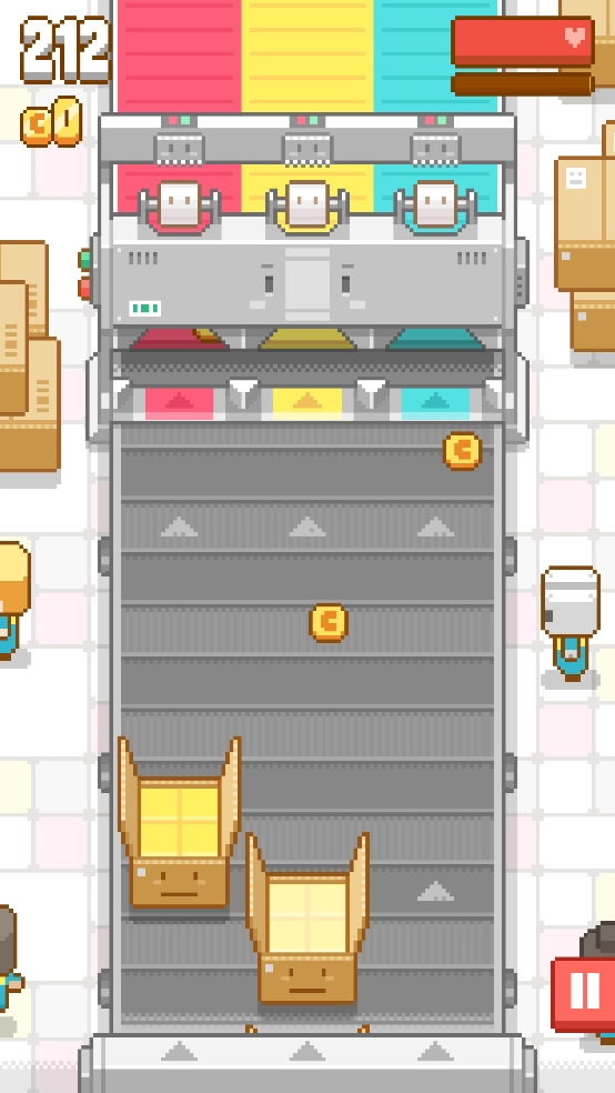 2、游戏中设计了连续得分机制,玩家在熟悉上述操作方法后,若对应颜色的包装通道上出现两个及以上的包装箱,点击箱子就能获得连续得分。