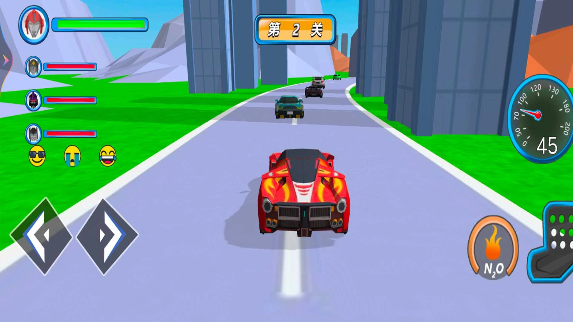3、切换为汽车形态在赛道上疾驰,躲避障碍、超越对手,赢取竞速奖励并解锁更多内容。