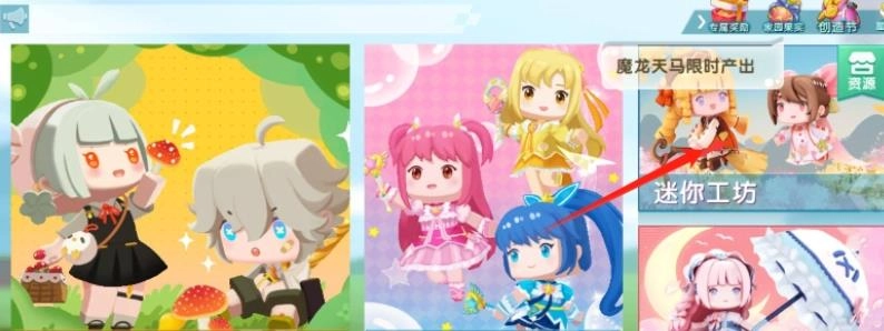 1、进入游戏后,在《迷你世界》的主页找到并点击“迷你工坊”选项。