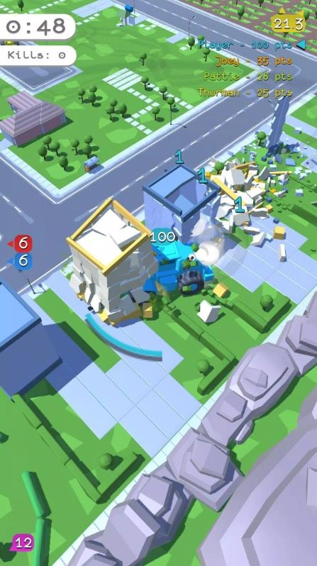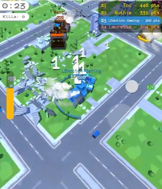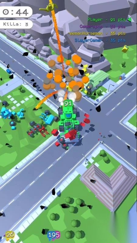 2、通过撞击其他车辆或建筑获取积分,同时让自己的体型变得更大。