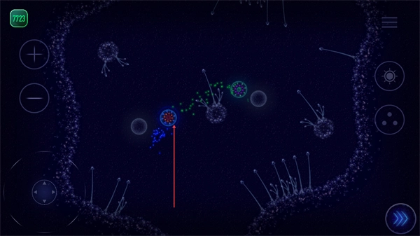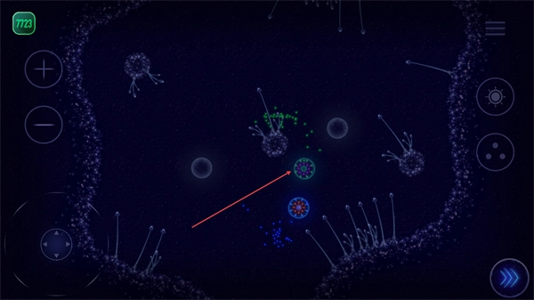 3、操控细胞向蓝色细胞移动,通过与之交互来获取资源或增益效果。