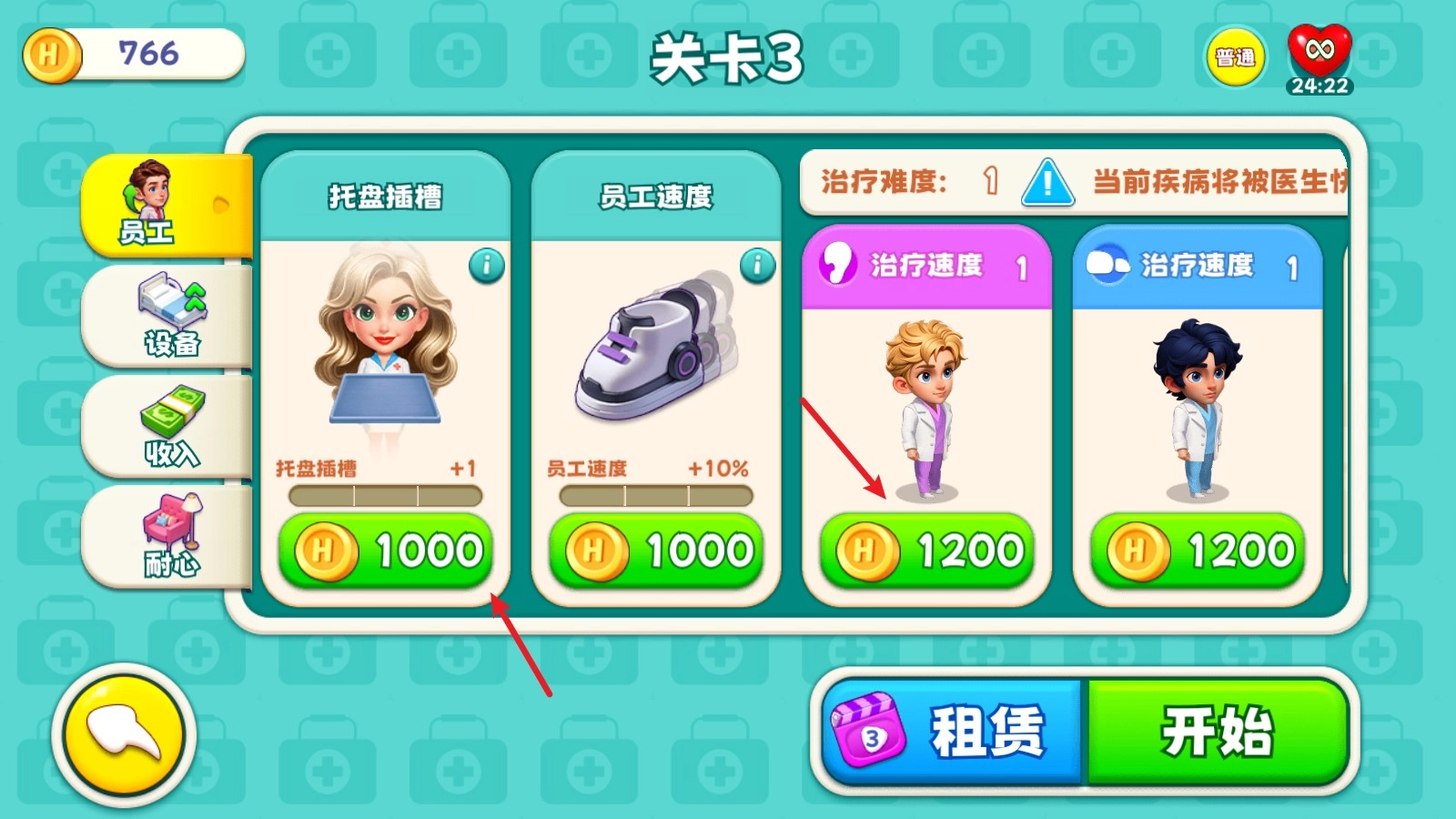 2、每位医生都有各自独特的属性,你需要合理运用这些属性所带来的加成效果。
