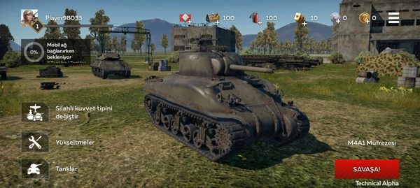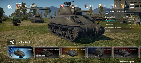 4、进入游戏后界面如图所示,点击左下角的仓库按钮,即可更换现有坦克或购买新的坦克。