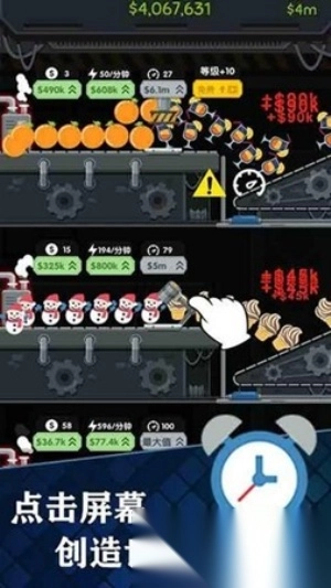 游戏的玩法十分简单易上手,玩家成功招聘员工后就能轻松解放双手,通过赚取金币来升级各类工厂设施,强烈推荐大家体验一番!