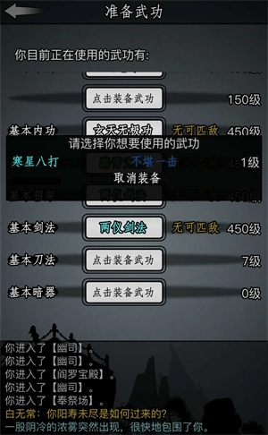 3、玩家无法准备武功的唯一情况,是缺乏对应的武学基础。各门派都有专属的内功、轻功、拳脚与招数,不过剑法、刀法和暗器这类武学,不同门派各有绝学;若玩家未掌握相应武学,便无法进行武功准备。需要注意的是,装备对应兵器后,即便玩家原本准备的是拳脚类武功,系统也会自动默认使用兵器类武学。要是玩家的兵器类武学等级不如拳脚类,建议就不要装备兵器。
