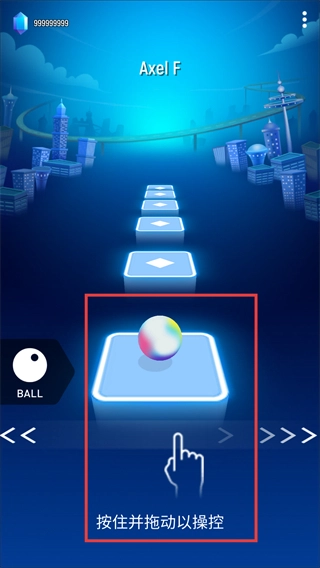 2、按住屏幕并拖动,操控小球向前移动,跟随音乐节奏行进。