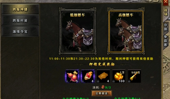 在游戏里能够进入跨服战场,通过押镖获取道具来提升自身的战斗力。