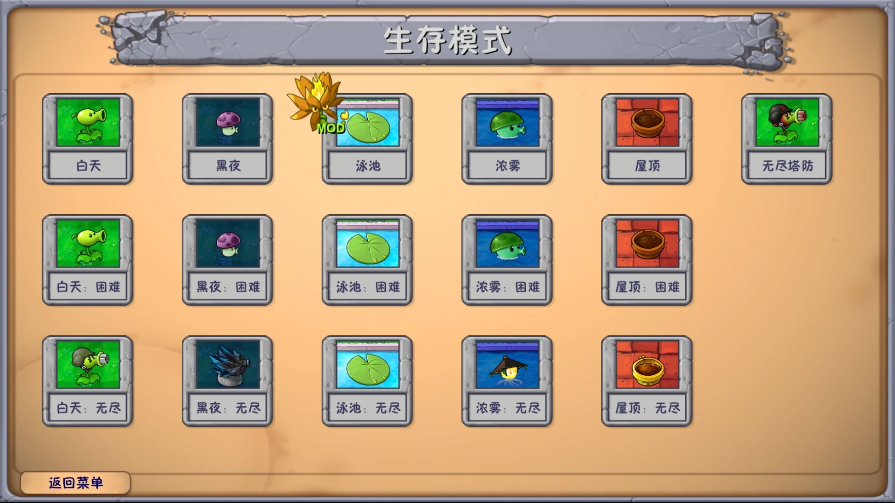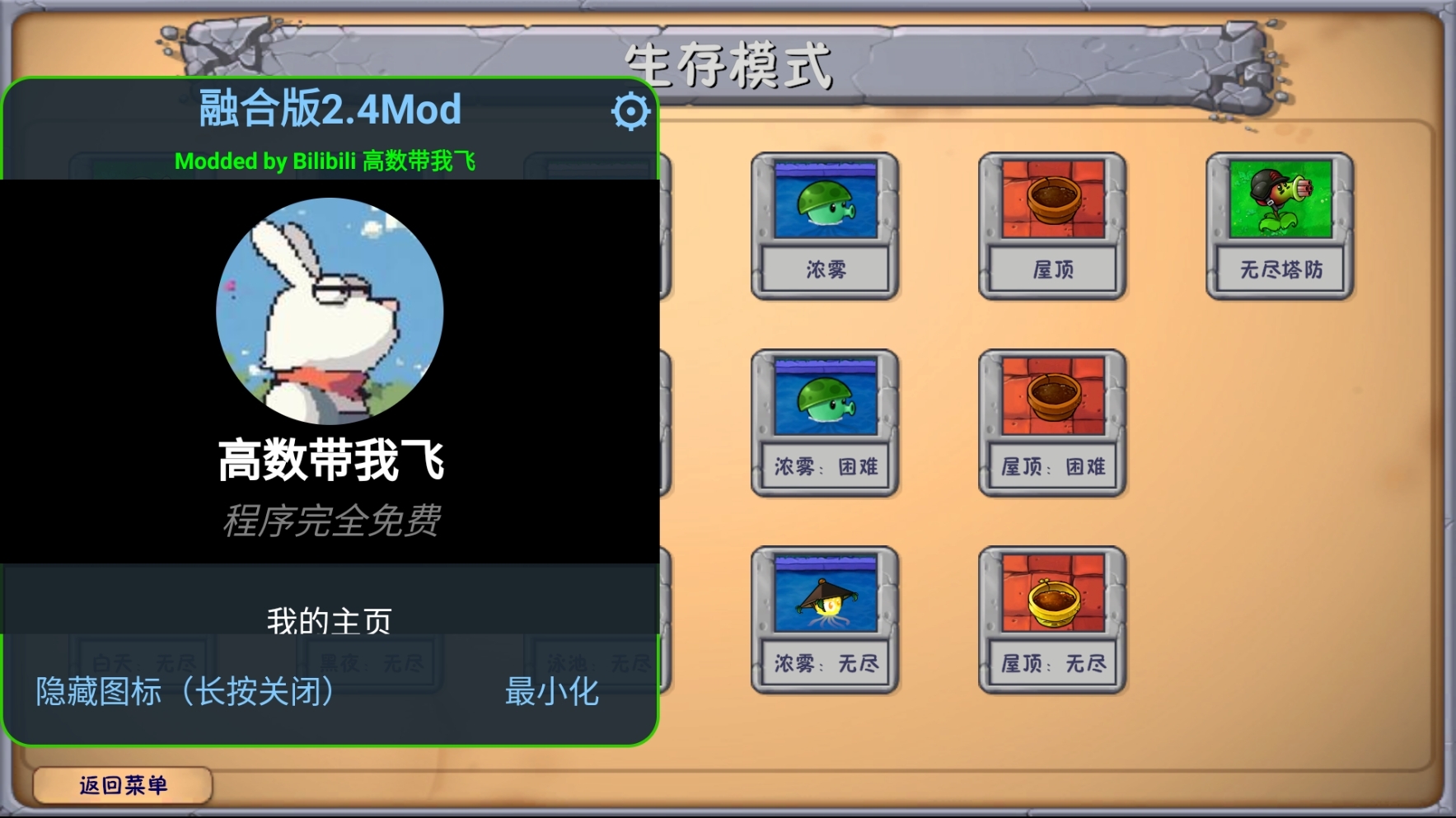 植物大战僵尸融合二创版是B站Up主高数带我飞基于Up主蓝飘飘fly制作的植物大战僵尸融合版创作的MOD。在这个由高数带我飞制作的MOD里,玩家可以解锁更多游戏功能,像锁定阳光、一键解锁旅行模式的全部植物以及开启所有关卡等,让游戏体验更加便捷。