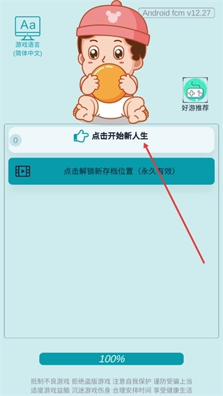 1、在当前界面点击“开始新人生”按钮,就能开启人生模拟游戏啦,目前游戏语言已设置为简体中文,您可以直接体验。