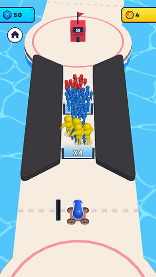 2、按住大炮持续不松开,就能不断发射炮弹人;炮弹人穿过倍数门后数量会增加,建议瞄准倍数较高的门进行发射。