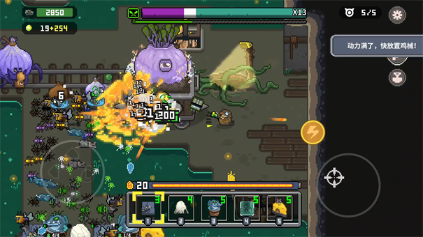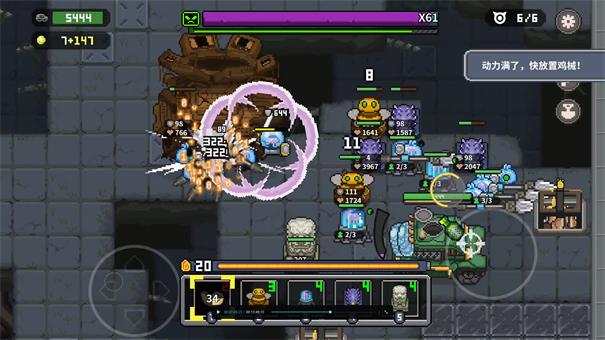 3、挑战BOSS时,尤其是面对高爆发类型的敌人,一定要提前布好“能量护盾”等防御技能,并搭配大范围控制进行削弱。此外,让鸡械队伍分散站位能够有效降低集体被秒杀的风险,大幅提升容错率。