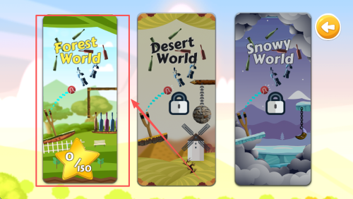 3、查看进度:进入森林世界后查看“0/150”表示已击倒0个瓶子,目标150个。