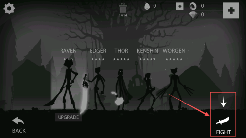 3、选择战斗:点击“FIGHT”按钮,选择进入战斗模式。