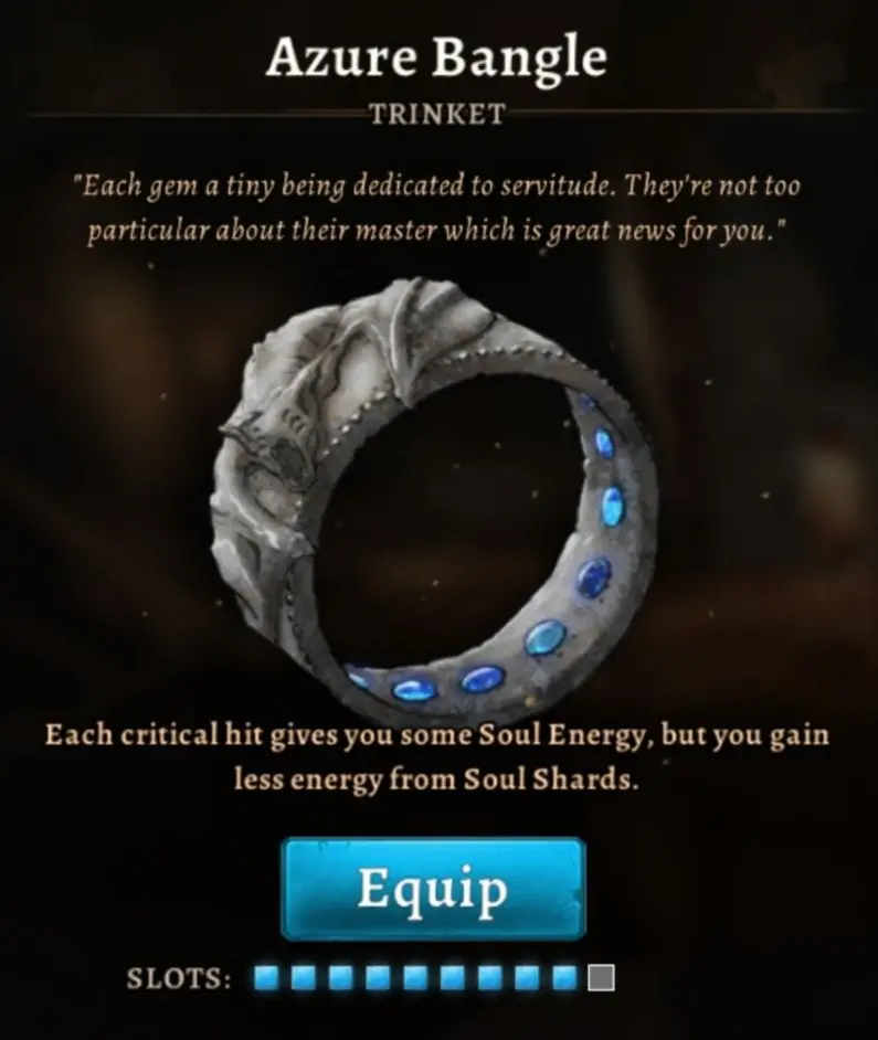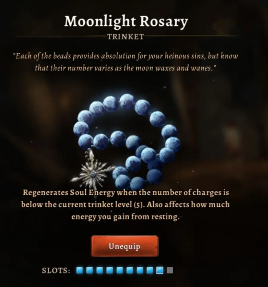 (PS:加点时选第四个选项,会提升你拾取碎片时获取的能量,还能增加饰品佩戴的上限,最多可以带十个饰品哦。你注意到饰品下方的小方格了吗?那些其实就是装备栏呀。)