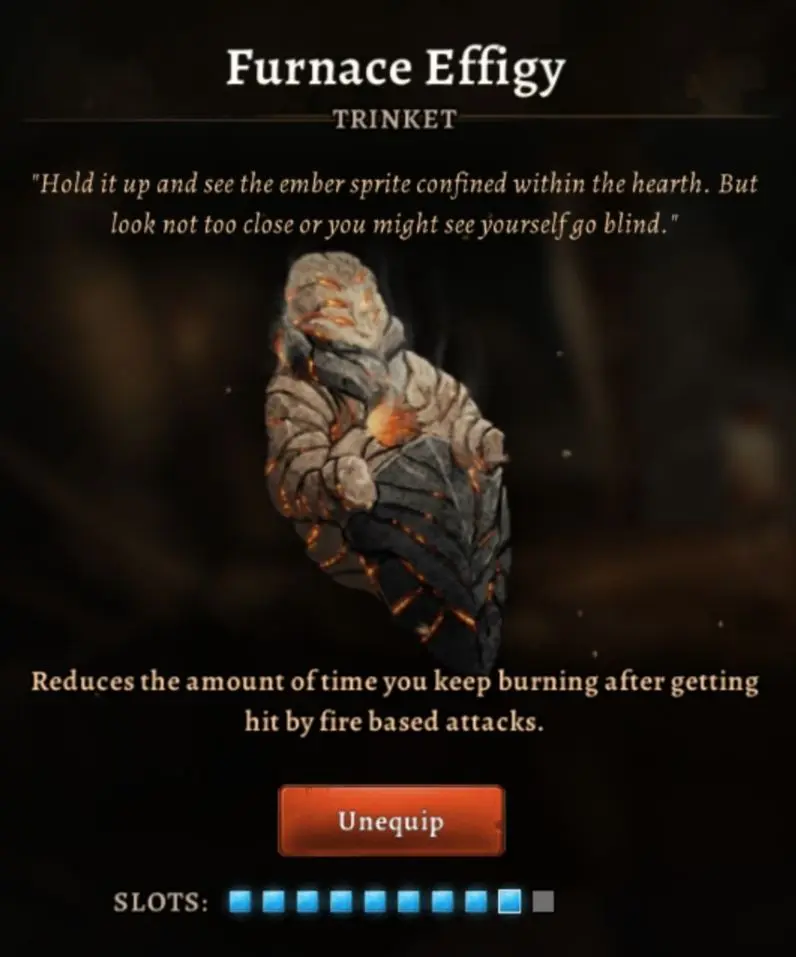 降低受到火焰攻击后处于燃烧状态的时长,不过无法减轻火焰本身造成的伤害。