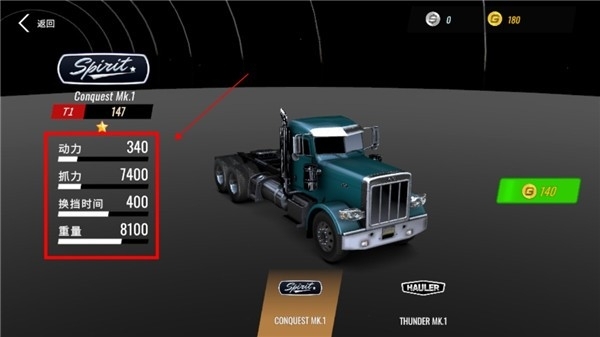 3、每辆卡车的动力、抓地力、换挡时间、重量四大属性升级逐步提升,还能解锁氮气加速功能。