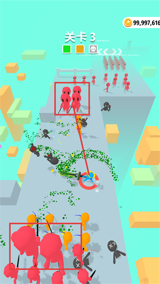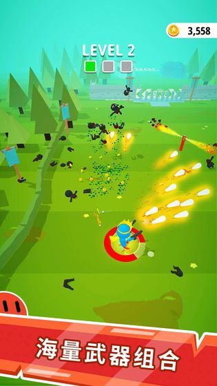 2、以推进式闯关为核心玩法,玩家只需专注于角色移动方向,无需额外操作即可触发自动攻击,扫清前方所有拦路敌人,直达关卡终点。