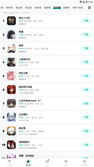 进入后即可看到各类榜单,例如热门榜、预约榜、热玩榜等。