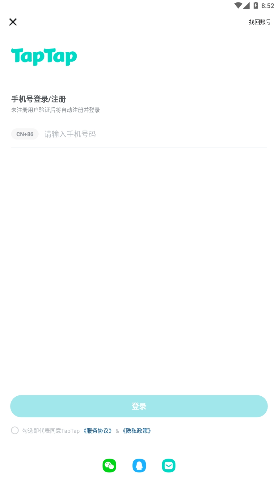 2、玩家可输入手机号,获取验证码后即可直接登录。