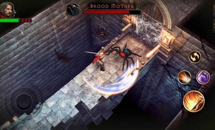 1、进入地牢后,左下角的虚拟摇杆可操控角色,持续探索地牢。