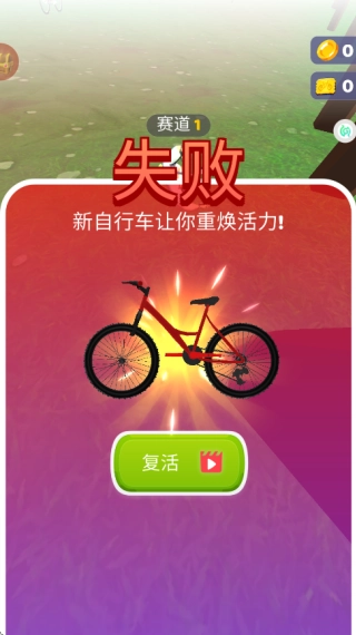3. 如下图所示,若在前进途中不慎摔倒,便会致使挑战失败。此时可选择观看广告复活,也能选择重新开始。