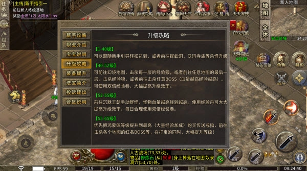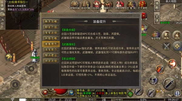复古版传奇里,游戏为玩家贴心准备了详尽的新手引导,还提供了全面的玩法攻略,这些内容玩家随时能在菜单面板中查看,完全不必担心在游戏里“迷路”。