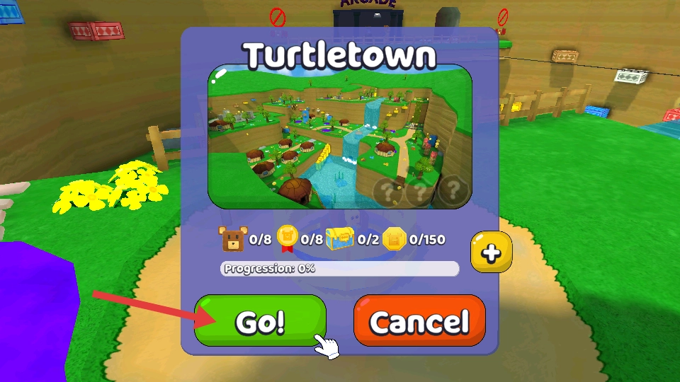 4、点击【Go!】按钮,进入【Turtletown】区域,完成收集类任务,以此推进游戏进度。