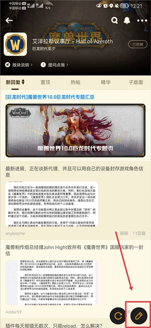 2、进入版块后,点击右下角的笔形图标就能编辑帖子内容,编辑完成后发布即可。