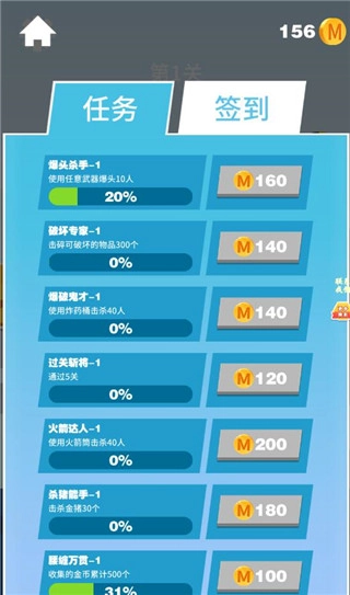 4、完成关卡通关可获得金币奖励,这些金币能够用于解锁更多种类、更强大的枪支。