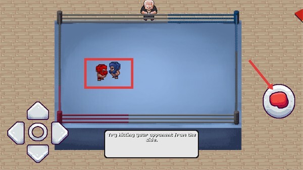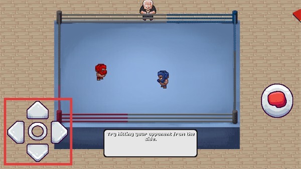 3、在教程战斗界面,借助左下角的方向键操纵拳击角色移动,朝着对手的方向逼近。