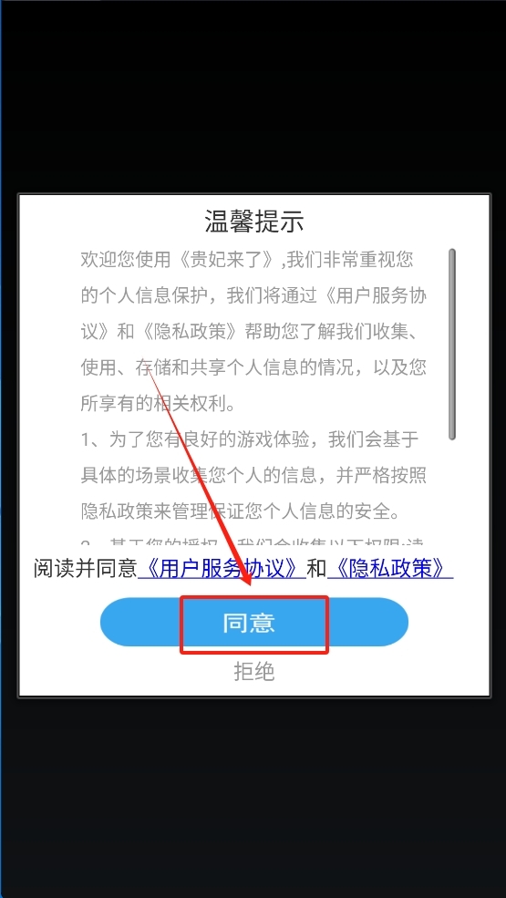 1、点击同意以接受用户协议和隐私政策。