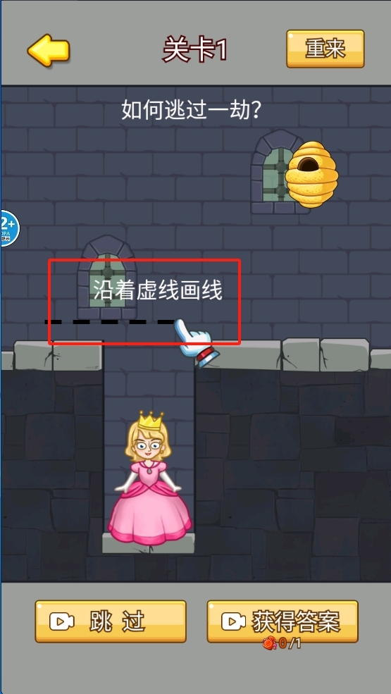 3、沿着虚线画线以完成关卡。