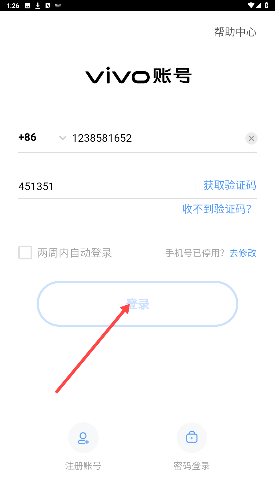 2、输入手机号,点击【获取验证码】。