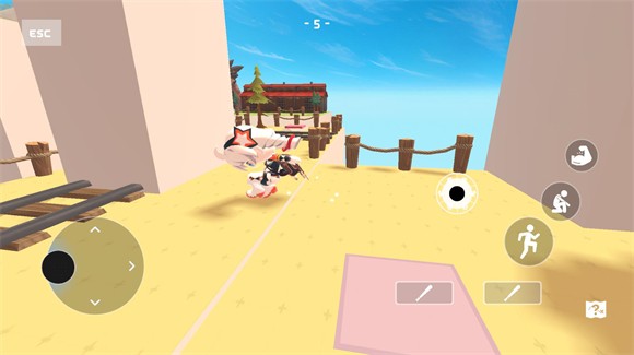 进入地图后,可通过左边的轮盘控制角色移动,而右边轮盘是控制表情的,其他的按键则分别是攻击键、跳跃键、蹲下
