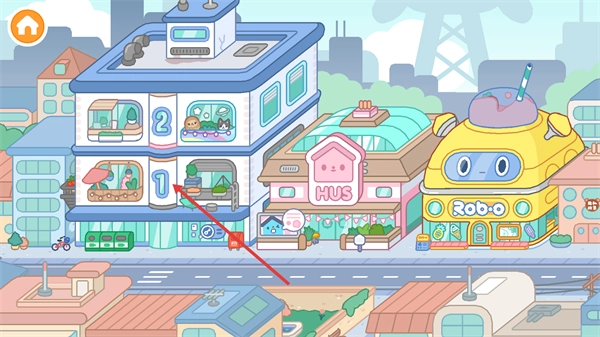 1、在城市建筑界面,点击带有数字标识的楼层区域(例如【1】层),就能进入该楼层对应的室内场景,进而开启场景内的互动流程。
