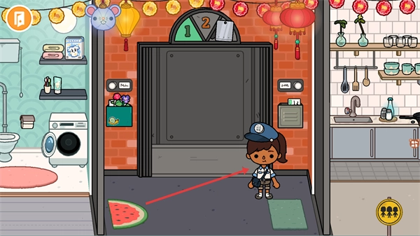 进入室内场景后,点击角色即可触发互动,还能查看场景里的各类设施(比如洗衣区、厨房),以此推动与角色相关的任务进程。